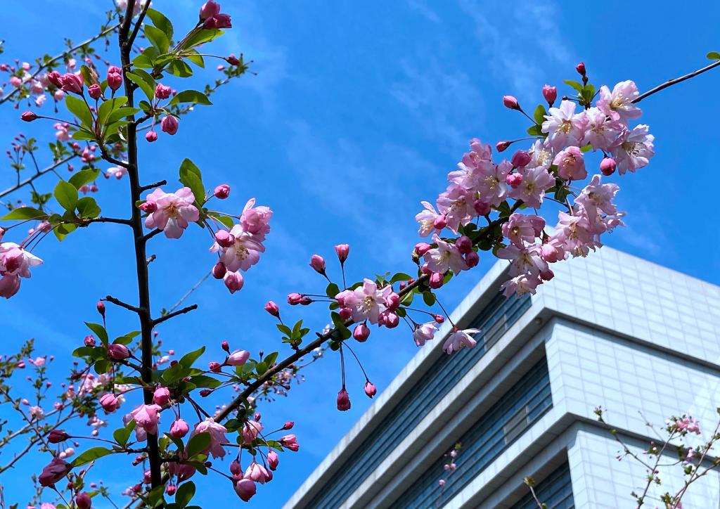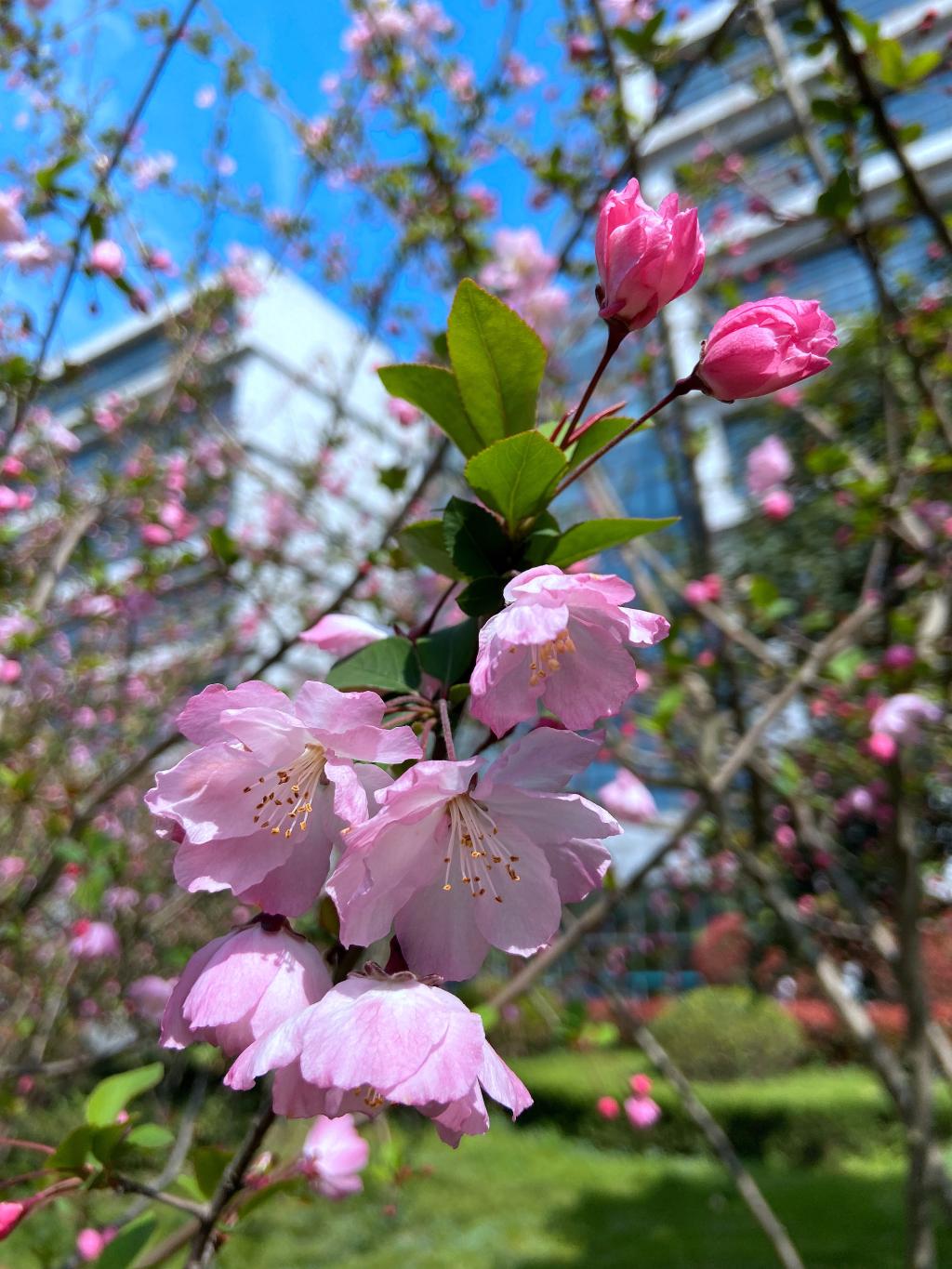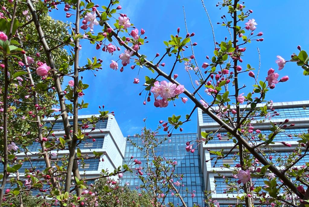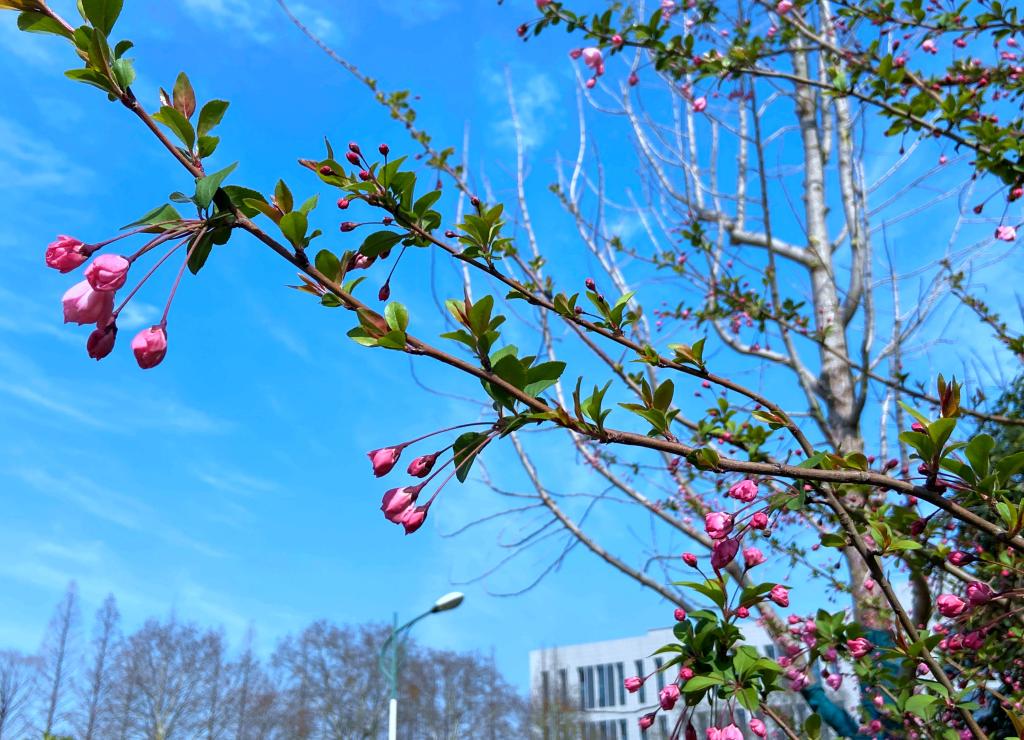 今年武汉暖春,近20度的气温,让校园里的西府海棠早早便盛开了。